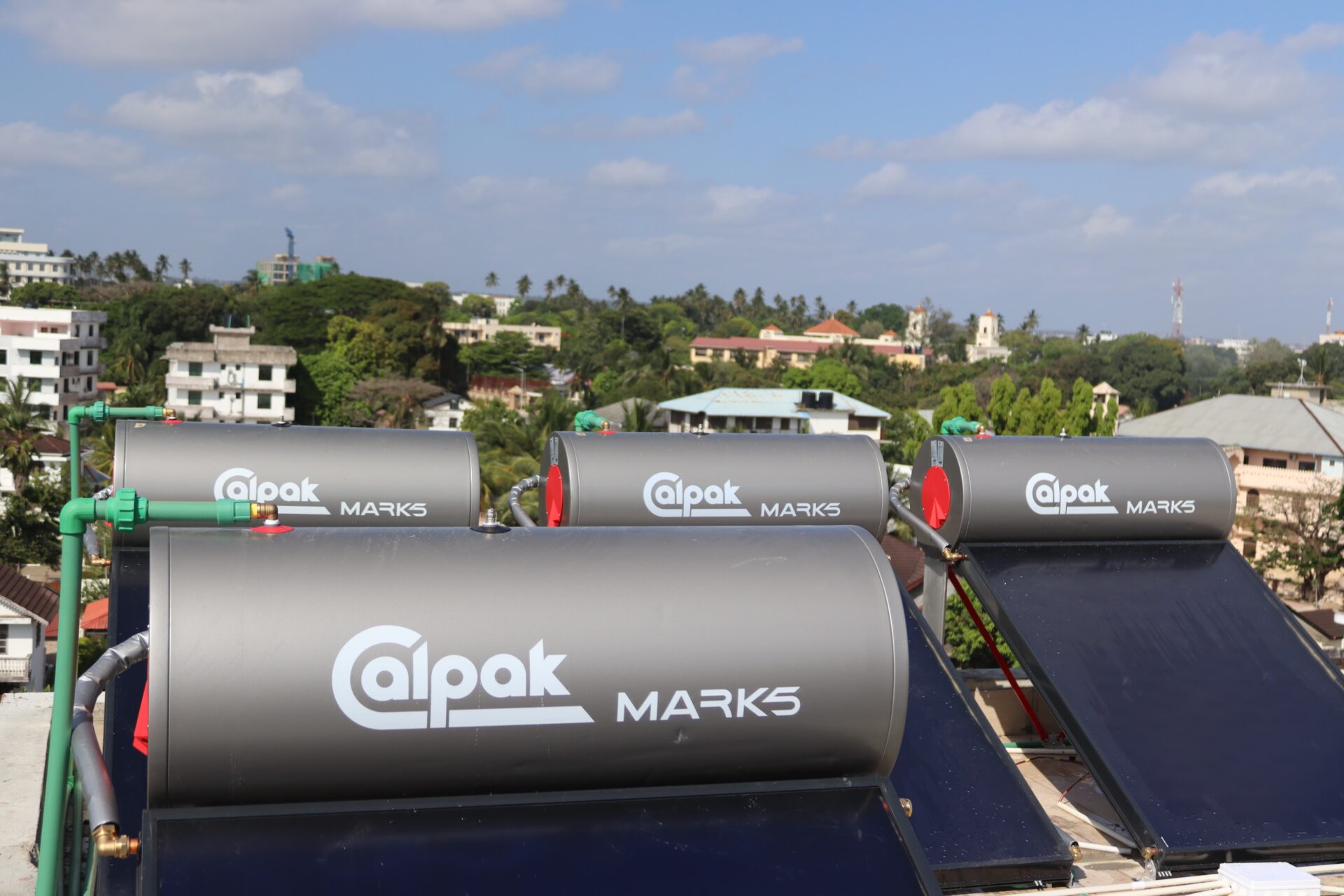 Solar Collectors are typically located on the roof or ground and mounted on a rack. They transfer the thermal energy from the sun to cold water or a heat transfer solution.